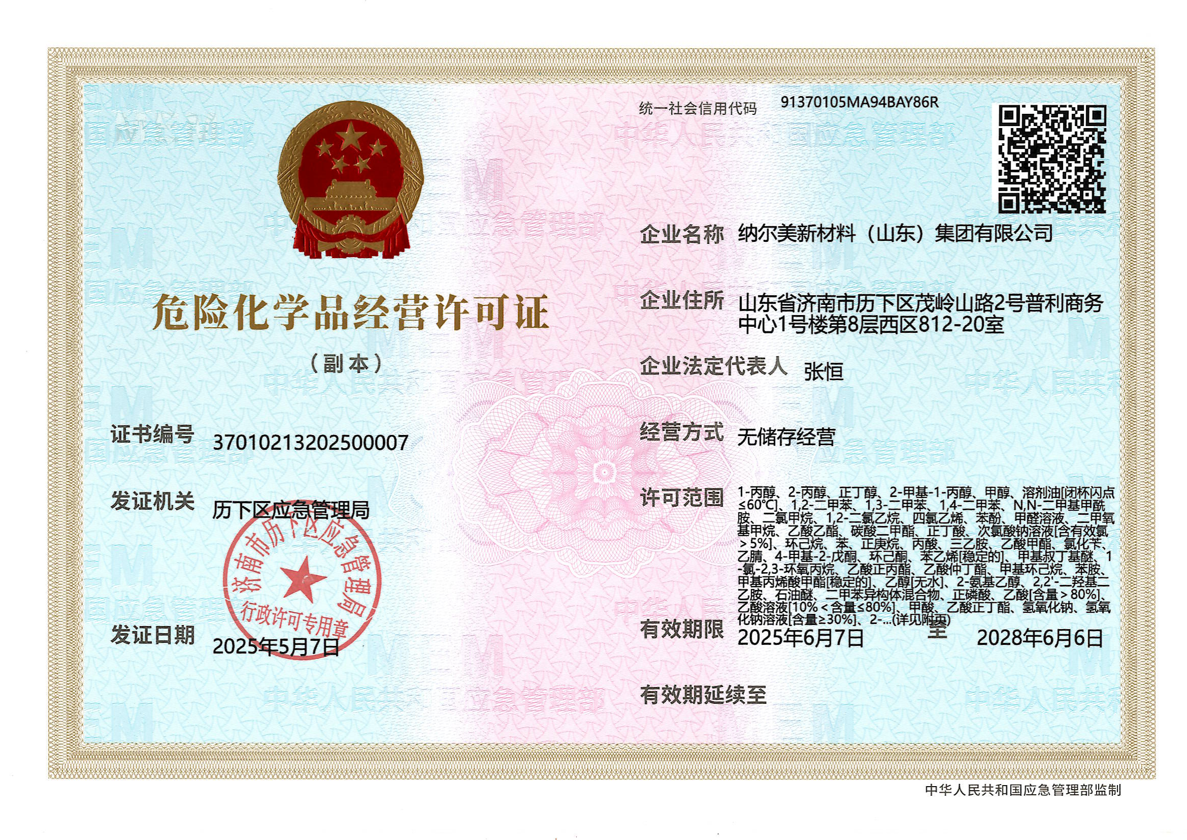 纳尔美新材料(山东)集团有限公司是一家专注于集化工原料批发为一体的化工新材料公司,该公司经营品种种类多样,公司引进国内外先进化工科技成果以及化工实验设施设备,竭诚为广大新老顾客提供一站式服务。公司仓储面积近8000多平方米,公司附近有大型物流专业中心,靠近308国道,交通便利,发货便捷。公司仓库内的...